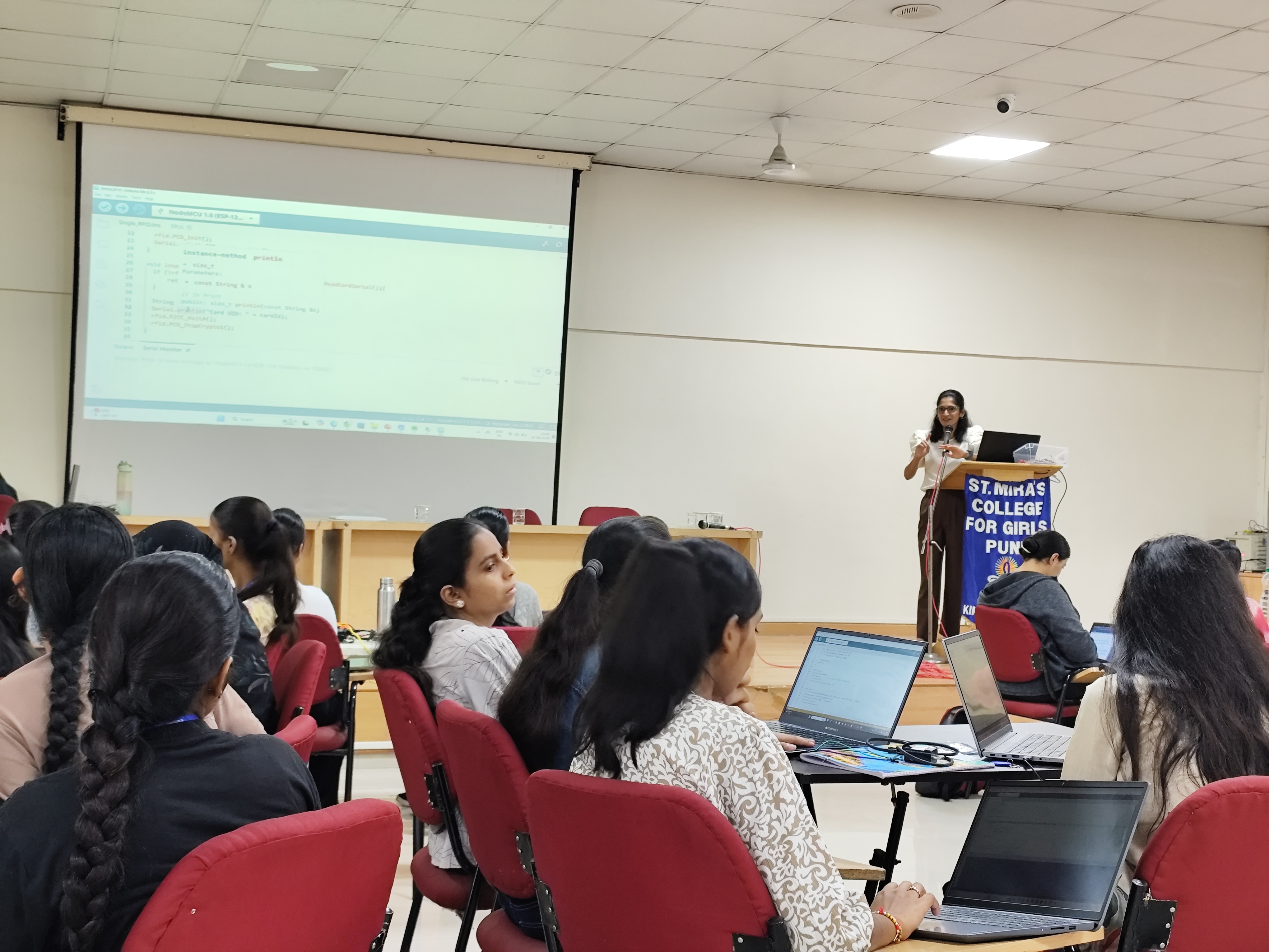 The Department of Electronics, B.Sc. (Computer Science), St. Mira’s College for Girls organized an Advanced IoT Workshop in collaboration with Mechatron Robotics on Saturday, 27th September 2025. The workshop was specially designed for SY and TY B.Sc. and BBA(CA) students to enhance their practical skills in the growing field of the Internet of Things.